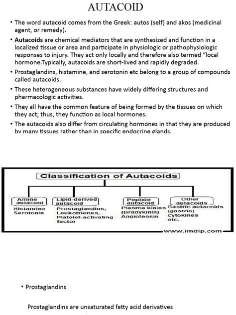 Now that we have a general understanding of what autacoids are, let’s take a closer look at the different types of these fascinating substances. Autacoids are a diverse group, and each type plays a unique role in the body. Here are some of the major players: