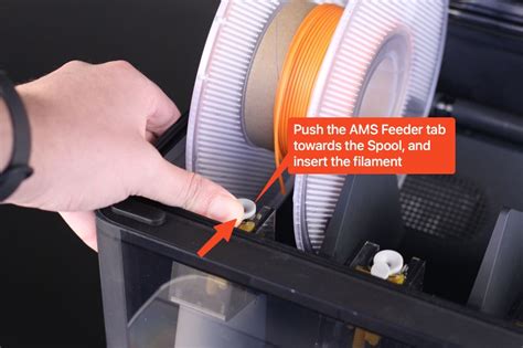 4. Loading Filament : Now comes the fun part! Open the AMS unit and insert your filament spools into the designated slots. Make sure the filament is properly aligned with the feeder mechanism. The AMS usually has a guide or diagram to show you the correct orientation. Feed the filament through the intake until the AMS grabs it. Repeat this process for all the spools you want to load.