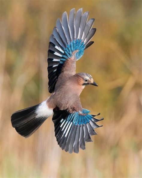 • Appearance : Similar in size, the European jay has a pinkish-brown body, blue wing patches, and a black and white tail.