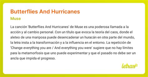 At its core, “ Butterflies and Hurricanes ” is about overcoming adversity and finding strength within oneself. The butterflies represent vulnerability, fragility, and the initial feelings of doubt or fear that one might experience when facing a challenge. Think of that nervous flutter you get in your stomach before a big event. That’s the butterflies! On the other hand, the hurricanes symbolize the overwhelming forces, obstacles, and struggles that life throws our way. These hurricanes can be personal struggles, societal pressures, or any major challenge that threatens to knock us down. The juxtaposition of these two contrasting images highlights the central theme of the song: the ability to transform inner weakness into immense power. It suggests that even the most delicate and vulnerable among us have the potential to weather the fiercest storms. The song is a journey, illustrating the process of recognizing one’s inner strength and using it to conquer the difficulties that life presents. It’s about believing in yourself, even when things seem impossible, and finding the resilience to push through. The song’s title is an oxymoron , a figure of speech that combines contradictory terms. This contrast immediately grabs the listener’s attention and hints at the internal conflict and eventual triumph that the song explores. It suggests that something as delicate as butterflies can, in some way, be connected to something as destructive as hurricanes. Ultimately, “ Butterflies and Hurricanes ” is an anthem of empowerment. It reminds us that we are all capable of more than we think we are and that even in our weakest moments, we possess the strength to overcome the most daunting challenges. It’s a message of hope, resilience, and the unwavering belief in the power of the human spirit.