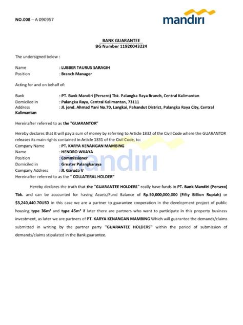 So, what exactly should you be looking for in a bank guarantee release letter from client ? It’s not just any scrap of paper; it needs to be official and contain specific information to be truly effective. First off, the letter must be on the client’s official letterhead. This is non-negotiable, guys. It lends authenticity and authority to the document. It should clearly identify the client – their full legal name and address. Next, it needs to explicitly reference the specific bank guarantee being released. This means including details like the guarantee number, the issuing bank, the amount of the guarantee, and the date it was originally issued. If there’s a specific contract or project associated with the guarantee, that should be mentioned too, perhaps with a contract number or project name. This specificity is key to avoiding any confusion. The core of the letter will be a clear and unambiguous statement from the client declaring that they are releasing the bank guarantee. Phrases like “hereby release and discharge,” “waive all rights,” or “no longer hold any claim” are common and indicate that the client has no further claims related to that particular guarantee. It should also state the effective date of the release. This is super important for timing. Sometimes, the release is effective immediately upon the client’s signature, while other times it might be tied to a specific condition being met or a date in the future. The letter must also clearly state that the client has no outstanding claims or demands against the contractor related to the performance covered by the guarantee. This reinforces the idea that the project was completed to their satisfaction and that all obligations are settled. Finally, and crucially, it needs to be dated and signed by an authorized representative of the client company. This could be a director, a manager, or someone specifically empowered to make such a declaration. Look for their printed name and title as well. Without these elements, the letter might be questioned by your bank or lack the necessary legal standing. Always double-check these details before considering the guarantee officially released.