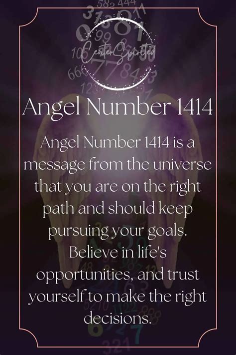 Alright guys, let’s zoom in on angel number 1414 . When this sequence keeps popping up in your life, it’s a really strong signal from your guardian angels that you’re in a prime position to manifest your dreams into reality . The double ‘1’ energy here is amplified, pushing you towards new beginnings, fresh starts, and taking the initiative. It’s like the universe is saying, “Go for it! Your ideas are potent right now, and your thoughts have the power to shape your future.” This is the time to really focus on your aspirations and to believe in your ability to achieve them. Don’t let self-doubt creep in; your angels are reassuring you that you have the inner strength and the creative power to make things happen. They’re encouraging you to be bold, to step out of your comfort zone, and to initiate those projects or changes you’ve been contemplating. This is your green light to start that business, learn that new skill, or make that big life change you’ve been dreaming about.