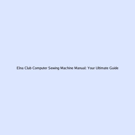 Elna Club Computer Sewing Machine Manual: Your Ultimate Guide