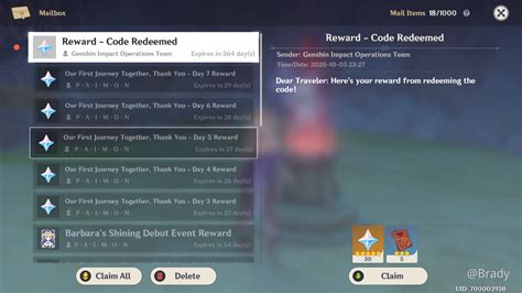8. Claim Your Rewards: The rewards will be sent to your in-game mail. Open the mail icon in the Paimon Menu to claim your Primogems, Mora, and other goodies.