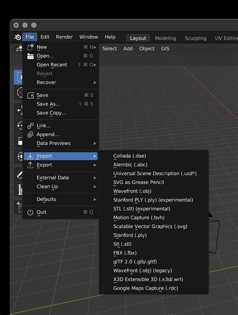 • Go to Import Menu: In the 3D Viewport, go to File > Import .