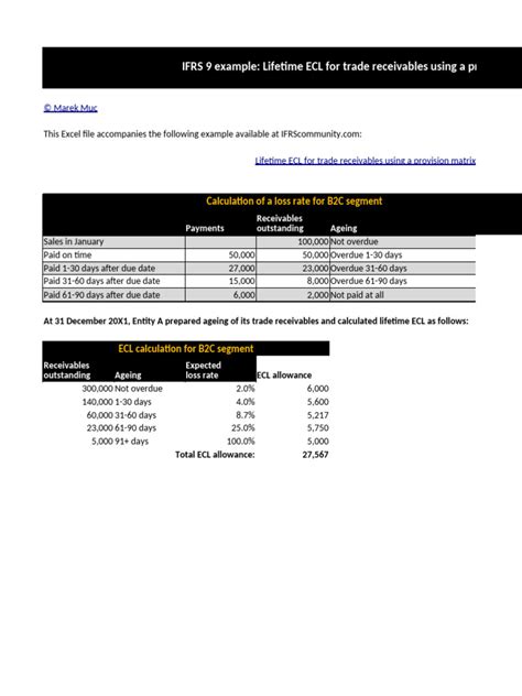 Hey guys, let’s dive into the nitty-gritty of the IFRS 9 trade receivables provision matrix . This is a super important topic for anyone dealing with financial reporting, especially when it comes to how companies account for potential losses on money owed to them. You know, those invoices that are sitting there, waiting to be paid? Well, IFRS 9 has specific rules on how to handle the risk that some of those might not get paid. This isn’t just some academic exercise; it has a real impact on a company’s balance sheet and its reported profits. The provision matrix is a key tool that helps businesses comply with these complex standards. We’re going to break down what it is, why it’s essential, and how it works in practice. So, grab a coffee, get comfy, and let’s get this sorted.