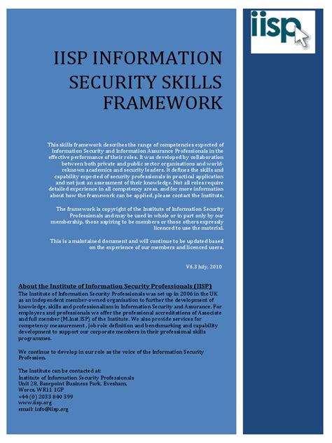The IISP achieves this through various means. They develop and maintain a skills framework that defines the core competencies required for different roles within information security. This framework acts as a benchmark for professionals to measure their skills against and identify areas for improvement. They also offer certifications that validate an individual’s knowledge and experience, giving employers confidence in their abilities. Imagine it as a seal of approval in the cybersecurity realm! Furthermore, the IISP provides a platform for networking and knowledge sharing among its members, fostering collaboration and innovation. They host conferences, workshops, and online forums where professionals can connect, learn from each other, and stay up-to-date with the latest trends and best practices. The IISP also actively engages with governments, industry bodies, and academic institutions to promote information security awareness and shape policy. They contribute to the development of cybersecurity standards and regulations, ensuring that they are effective and aligned with the needs of the industry. By advocating for a stronger focus on information security at all levels, the IISP helps create a safer and more secure digital environment for everyone.
