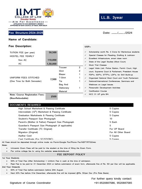 Alright, let’s get down to the nitty-gritty: the IMIMS Indore BA LLB fees . The fee structure can vary slightly from year to year, so it’s always a good idea to check the official IMIMS Indore website or contact their admissions office for the most up-to-date information. Generally, the fees are broken down into several components. The primary component is the tuition fee , which covers the cost of your education, including lectures, access to resources, and other academic services. Then there are other fees , such as the admission fee, which you pay once at the beginning of your program. There might also be a security deposit, which is usually refundable at the end of your course, and other charges like examination fees, library fees, and fees for extracurricular activities or student welfare programs. Understanding these components helps you get a clear picture of the total cost. When you look at the tuition fees, they are usually the largest part of the overall cost. The other fees are there for specific services and resources. The security deposit is there to cover any damages or outstanding dues, which is usually returned after you complete the program, which shows that you have to take care of the expenses. Always make sure to get a detailed breakdown of all the fees, so you know exactly what you’re paying for. Keep in mind that the fee structure can change, so always verify the latest information from the official sources. The fees are usually paid on a semester-by-semester or yearly basis, which can be useful when budgeting. Make sure to keep all the receipts and documentation of fee payments for future reference. The total cost of the BA LLB program at IMIMS Indore involves several charges beyond the tuition fees. The fees are a crucial factor for anyone considering this program, so it is necessary to consider all the components.