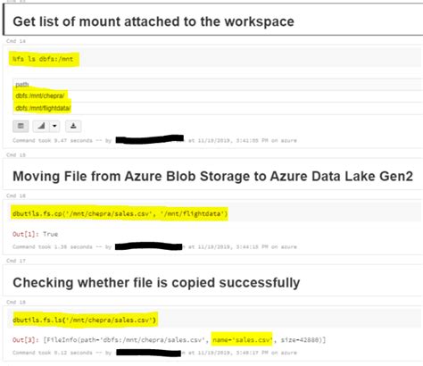 • Copying and Moving Files : dbutils.fs.cp() allows you to copy files from one location to another, and dbutils.fs.mv() lets you move files. These functions are essential for organizing your data within DBFS.