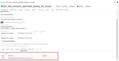4. Restart the Cluster: Restart the cluster. During the startup process, the init script will run and install the specified Python packages.