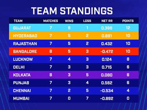 • Engage with Other Fans: Use the point table as a conversation starter with other IPL fans. Discuss team rankings, playoff scenarios, and potential upsets. This can make the IPL viewing experience even more social and fun.