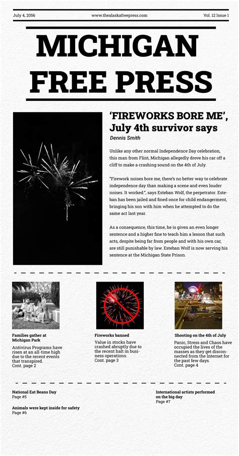 Then we have the tabloid format. Tabloid newspapers are smaller than broadsheets, making them more portable and easier to read. Tabloid templates are often used for magazines, newsletters, and alternative newspapers. The smaller format lends itself to a more concise and visually focused design. Tabloid newspapers often feature shorter articles, larger headlines, and more prominent images. This format is well-suited for grabbing the reader’s attention and conveying information quickly. However, the limited space of a tabloid newspaper can also be a constraint. Designers must carefully prioritize content and make effective use of every square inch. Consider a digital newspaper template. With the rise of online media, digital newspaper templates have become increasingly popular. These templates are designed for viewing on computers, tablets, and smartphones. Digital newspaper templates offer a range of interactive features, such as clickable links, embedded videos, and animated graphics. They also allow for easy sharing on social media platforms. Digital newspaper templates require a different approach to design than print templates. Designers must consider factors such as screen resolution, scrolling behavior, and mobile responsiveness. However, digital newspaper templates also offer a wealth of opportunities for creativity and innovation. By examining these examples, you can gain inspiration and adapt elements to your own newspaper design, creating a unique and effective publication.