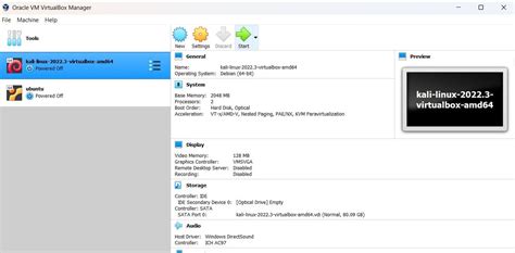 1. Select the VM : In the VirtualBox Manager, select the Kali Linux virtual machine you just created.