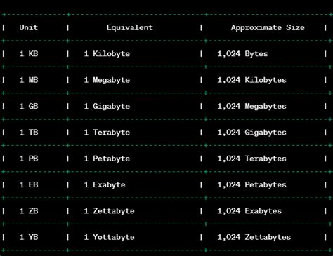 - Kilobyte (KB): 1 KB = 1,024 bytes