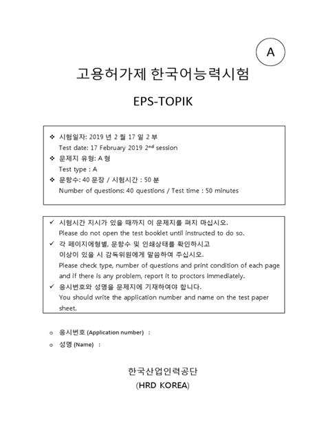 First things first, let’s get a handle on what you’re up against with the EPS TOPIK exam . Knowing the structure is half the battle, seriously! The EPS TOPIK, which stands for Employment Permit System - Test of Proficiency in Korean, is designed to assess your basic Korean language skills for potential employment in South Korea. The exam is typically divided into two main sections: Reading (읽기 - Ilkgi) and Listening (듣기 - Deutgi) . Each section has its own set of challenges, and understanding the types of questions you’ll encounter is crucial for targeted studying. For the reading section, you’ll be tested on your ability to comprehend written Korean, including understanding vocabulary, grammar, and the overall meaning of short passages or sentences. You’ll likely see questions asking you to fill in blanks, choose the correct word or phrase, or identify the main idea of a text. On the other hand, the listening section assesses your comprehension of spoken Korean. This involves listening to dialogues or short monologues and then answering questions based on what you’ve heard. The audio can be quite fast-paced, so developing good listening comprehension skills is paramount. The total score determines your eligibility, and the passing mark can vary, so it’s always a good idea to aim higher than the minimum requirement. Familiarizing yourself with the official EPS TOPIK guidelines and sample tests is an absolute must. These resources will give you a realistic feel for the question formats, the difficulty level, and the time constraints you’ll be working under. Don’t underestimate the power of practice tests; they are your best friends in figuring out where you need to focus your energy. Remember, the goal is not just to pass, but to pass comfortably, which opens up more opportunities. So, dive deep into the official materials, understand the scoring, and get a clear picture of the exam blueprint before you even start intense studying. This foundational knowledge will set you on the right path to mastering the EPS TOPIK .