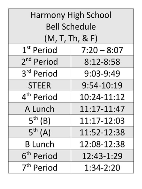 So, how does the Monroe High School bell schedule actually affect your day-to-day life as a student? Well, it’s pretty significant, guys! Beyond just telling you when to be in class, the bell schedule shapes your entire experience at school. It dictates the rhythm of your learning , influencing how much time you have for in-depth discussions, hands-on activities, and focused study within each class period. A well-structured schedule ensures that teachers can cover the required curriculum without feeling overly rushed, allowing for more engaging and effective teaching methods. Think about it: if passing periods were too short, you’d constantly be stressed about being late, which is not conducive to learning. Conversely, if they were too long, valuable instructional time would be lost. The bell schedule also plays a huge role in extracurricular activities . Sports practices, club meetings, drama rehearsals, and academic clubs often need to fit in before school, during lunch, or after the final bell. The timing and length of these activities are directly influenced by the school’s main schedule. A student athlete, for example, needs to know exactly when their last class ends to make it to practice on time. Student life outside the classroom is intrinsically linked to the school’s timetable . Furthermore, the schedule impacts your social life. Lunch breaks are prime time for socializing, catching up with friends, and building those important peer relationships. The length and timing of these breaks can affect how much quality time you get to spend with your friends. For students involved in after-school jobs or community service, the end-of-day bell is their signal to head off and fulfill those commitments. The bell schedule is essentially the backbone of the school day , providing structure and predictability. It allows for efficient use of resources, like classrooms and teachers, and ensures that the educational process runs smoothly. Understanding and respecting the bell schedule isn’t just about avoiding detention; it’s about optimizing your own time, participating fully in school life, and making the most of your educational journey at Monroe High. It fosters a sense of discipline and time management, skills that are invaluable long after you’ve graduated.
