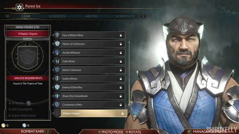 Finally, we have the shoulder pads and other miscellaneous gear that truly complete Sub Zero’s look. These might seem like minor details, but they can have a surprisingly significant impact on the overall aesthetic. Shoulder pads range from sharp, angular pieces that echo his icy powers to more rounded, traditional samurai-style pauldrons. Some are adorned with fur or icy crystals, adding texture and visual interest. Beyond shoulder pads, you’ll also find various other gear slots, such as belts, arm guards, and even back accessories that can further refine your Sub Zero’s appearance. These smaller pieces are often the difference between a good customization and a great one. They allow for that hyper-specific detailing that makes your character feel truly unique. Think about the Lin Kuei’s emphasis on precision and discipline – these gear pieces often reflect that with clean lines and functional designs, but sometimes they can also be quite flamboyant, adding a touch of personality. Unlocking these often involves the same methods as masks and chest pieces – Krypt exploration, Towers of Time rewards, and specific character challenges. Sometimes, these are the rewards you get for beating a particularly tough boss in the Krypt or completing a difficult tower sequence. These smaller gear pieces are crucial for achieving that perfect, personalized look. They’re the details that enthusiasts will notice, and they add a level of depth to your character’s presentation. Don’t get so caught up in the big pieces that you forget about the smaller ones! Mastering Sub Zero’s look means paying attention to every single slot , ensuring that all the elements work together harmoniously. So, keep hunting, keep playing, and make sure you snag every piece of gear you can to give your Sub Zero that final, killer touch.
