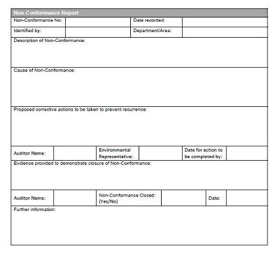 • Description of the Non-Conformance : Be specific! Describe exactly what went wrong, including details such as the product or service, the specific requirement that was not met, and the extent of the problem.