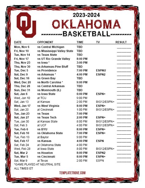 What’s up, hoops fans! Are you ready to dive into the electrifying world of college basketball? If you’re an Oklahoma Sooners fan, you’re in for a treat this season. We’re here to break down the OU basketball schedule for the 2023-2024 season , giving you all the juicy details you need to plan your game days and cheer on your favorite team. Get ready for some intense matchups, nail-biting finishes, and hopefully, a whole lot of wins!