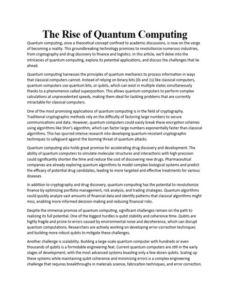 Quantum Computing's Rise: What It Means For Tomorrow