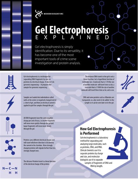 Let’s get down to the nitty-gritty of how electrophoresis actually functions in a lab setting. The setup is pretty straightforward, though the execution requires precision. You’ll typically have a gel, often cast in a tray, which serves as the medium for separation. This gel has tiny pores that act like a molecular sieve. We then prepare our sample, which contains the molecules we want to separate – let’s say DNA fragments. These samples are mixed with a loading dye, which helps us visualize the sample in the gel wells and track the progress of the electrophoresis. The gel itself is submerged in a buffer solution, which conducts electricity and maintains a stable pH. This whole setup is then placed in an electrophoresis chamber, which has electrodes at either end. When you apply an electric current, a positive charge is applied to one end (the anode) and a negative charge to the other (the cathode). Since DNA is negatively charged, it will migrate away from the cathode and towards the anode. The electric field creates a driving force, pulling the DNA fragments through the gel matrix. As mentioned, the size of the DNA fragment dictates how fast it moves. Shorter fragments can navigate the pores of the gel more easily and therefore travel further down the gel in a given amount of time. Longer fragments, being bulkier, get tangled up in the pores more often and move much slower. After running the electrophoresis for a specific period, the electric current is turned off. At this point, the DNA fragments are separated into distinct bands within the gel, with the smallest fragments at the far end and the largest fragments closer to the starting point. To see these bands, we usually stain the gel with a dye that binds to DNA, like ethidium bromide or a safer alternative. This staining process makes the invisible DNA visible under UV light, allowing us to analyze the results. The pattern of bands observed is like a barcode, unique to the sample and providing crucial information about the size and quantity of the DNA fragments present. It’s a methodical process, but the insights it provides are truly profound, enabling scientists to decode genetic information and understand biological processes at a molecular level.