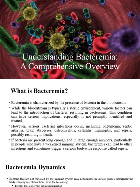 Bacteremia simply refers to the presence of bacteria in the bloodstream. Think of it like this: bacteria have managed to sneak into your blood, which is usually a sterile environment. Now, this doesn’t automatically mean you’re in serious trouble. Bacteria can enter the bloodstream through various everyday activities, such as brushing your teeth vigorously, undergoing certain medical procedures, or even from a minor cut. In many cases, your immune system is perfectly capable of clearing these bacteria without you even knowing they were there! The body’s natural defenses, including white blood cells and other immune mechanisms, usually kick in to eliminate the bacteria and prevent any further complications.