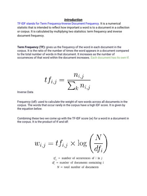 Now, let’s move on to the second, and arguably more clever, part of the equation: Inverse Document Frequency (IDF) . This is where we introduce the concept of rarity and how it impacts a word’s importance. While Term Frequency tells us how often a word appears within a document, IDF tells us how infrequent a word is across the entire collection of documents (the corpus). The basic idea is that words that appear in many documents are less informative than words that appear in only a few. Think about it: a word like ‘the’ appears in practically every document. If we used this in our analysis, it would get a super high score just because it’s everywhere, which is definitely not what we want. On the other hand, a word like ‘chrysanthemum’ might appear in only a handful of documents. If it appears frequently in those specific documents, it’s likely to be a key indicator of their topic. IDF is calculated by taking the logarithm of the total number of documents divided by the number of documents that contain the specific word. The formula often looks something like log(N / df) , where N is the total number of documents and df is the document frequency (the number of documents containing the term). By taking the logarithm, we dampen the effect of very large differences in document frequency. A word appearing in 10 documents versus 100 documents will have a different IDF score, but a word appearing in 1000 versus 10000 documents will have a much smaller difference in IDF. This is because the relative rarity matters more than the absolute count. The higher the IDF, the rarer the word, and thus, the more information it potentially carries. This inverse relationship is key – common words get a low IDF score, while rare words get a high IDF score. It’s this part of the calculation that helps us separate the signal from the noise, ensuring that words that truly define a document’s unique theme aren’t overshadowed by linguistic filler.