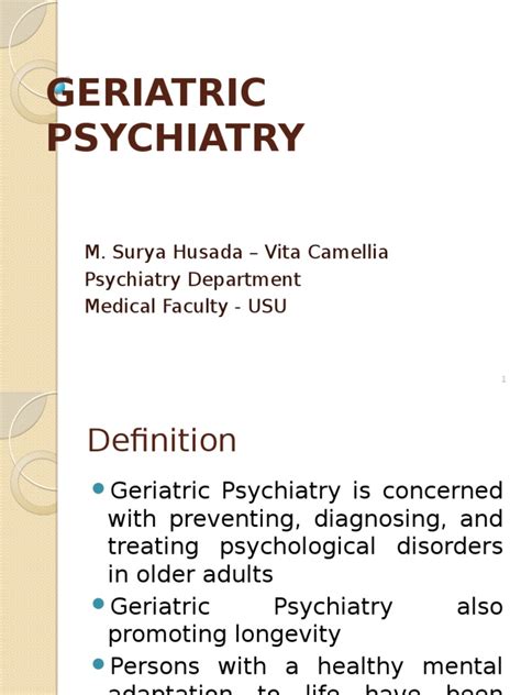 Hey everyone! Let’s dive into something super important: geriatric psychiatry . This field focuses on the mental health of older adults, which is a growing area of concern as our population ages. It’s not just about the typical aging stuff, it’s about the specific mental health challenges that come with getting older. So, what exactly is geriatric psychiatry, and why is it so crucial? We’ll break it down, covering everything from common conditions to treatments and how to support our loved ones. Geriatric psychiatry is a specialized branch of psychiatry dedicated to the diagnosis, treatment, and prevention of mental disorders in older adults. It considers the unique biological, psychological, and social factors that influence the mental health of this population. It’s more than just treating the same conditions as younger adults; it involves understanding how aging affects mental health and tailoring treatments accordingly. It is a very important thing that needs to be taken care of for the elderly.