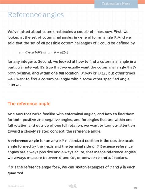 Understanding Reference Angles In Degrees