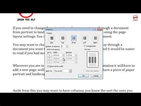 • Width and Spacing: This is the gold mine! You can set the Width of each column individually and the Spacing between the columns. If you want columns of equal width, make sure the ‘Equal column width’ box is checked. If you want them different, uncheck it and adjust each column’s width manually.