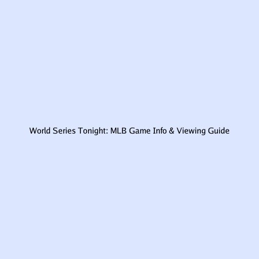 World Series Tonight: MLB Game Info & Viewing Guide